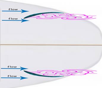 · Le" poids dynamique" est visible dans l'action et plus difficile à appréhender: il représente la résistance à l'avancement qui freine la planche. Ainsi un aileron qui présente un angle inadapté, ou bien qui génère un décrochage, provoque une trainée et donc un poids dynamique bien plus gênant et sensible que son poids statique…