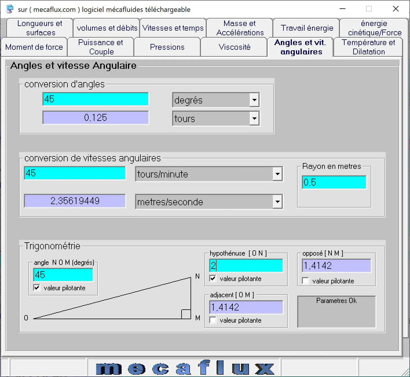 Voici quelques copies d'écrans de la "boite à outils" mecaflux standard. En couvrant les nombreux cas rencontrés lors d'études de projets en relation avec les fluides, Mecaflux standard vous fera gagner un temps precieux.