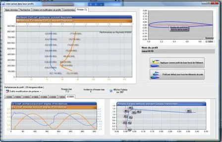 The database profiles MECAFLUX Heliciel, allows you to create the new design patterns and memorize the performance under a wide range of Reynolds numbers to create propellers or wings: Interactive profiles polar database Heliciel: