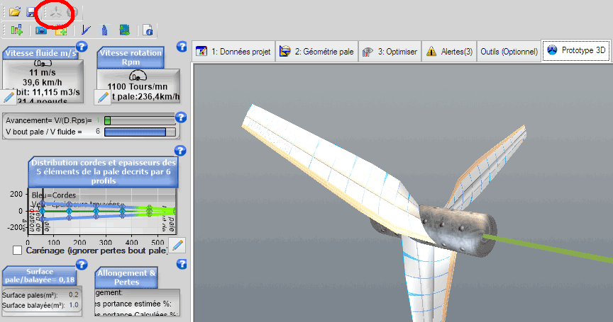 On peut finalement enregistrer son travail et exporter le modèle de la pale pour pouvoir la fabriquer :